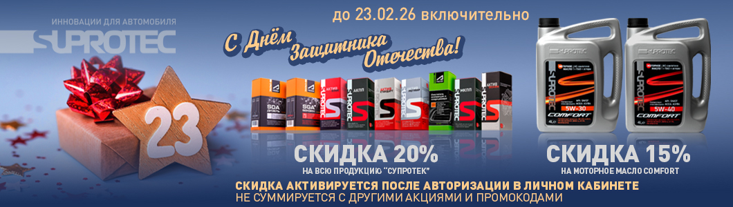 Фирменный интернет-магазин средств автохимии "Супротек" с постоянными и акционными скидками от производителя и большим выбором способов доставки по РФ.Компания “Супротек” занимается разработкой и производством товаров автохимии с 2002 года. Собственная научная лаборатория позволяет наделить продукты рядом преимуществ по сравнению с аналогичными товарами других марок. Главное достижение “Супротек” - многолетняя репутация, которая базируется на качестве производства и ответственности перед потребителями.
