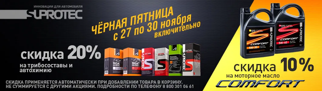 Фирменный интернет-магазин средств автохимии "Супротек" с постоянными и акционными скидками от производителя и большим выбором способов доставки по РФ.Компания “Супротек” занимается разработкой и производством товаров автохимии с 2002 года. Собственная научная лаборатория позволяет наделить продукты рядом преимуществ по сравнению с аналогичными товарами других марок. Главное достижение “Супротек” - многолетняя репутация, которая базируется на качестве производства и ответственности перед потребителями.